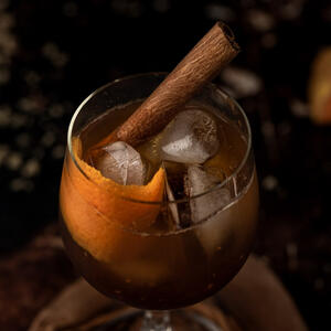 "Bark Skin" - A mix of birch syrup and wildhammer whiskey, served with a cinnamon stick and orange peel garnish.