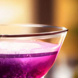 "Purple Thunder" - A sumptuous combination of dark sweet cherry, grape, blueberry, blackberry and blackcurrant juice, mixed with vodka and moonberry gin. Dark chocolate rim on the glass as garnish.