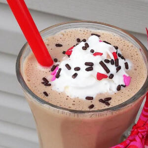"La bombshell deluxe" - A delightfully thick boozy shake, made with dark chocolate, double cream and a fair dash of mint liqueur. Topped with whipped cream and chocolate bits. Served in a sundae glass with a straw.